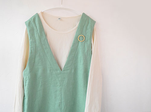 | こんな↑感じで冬はタートルネックに合わせて、 春から秋にかけてはTシャツやノースリーブなどと合わせるのが◎です。 この『サロペット【4】』は全サイズ試着可能です。 ウールでつくったもの、リネンやコットン… 質感が異なるだけで、印象も変わるので ぜひ試着しに来てくださいね。 |