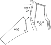 | 「もし合わなかったらどうしよう」と思いながら、 合印同士をまち針でとめ、 縫い合わせる1cmのところを さらに細かくまち針でとめていくと、 自分でもびっくりするくらい、ピッタリ合いました! 生地を裁断する前に、 しっかり地直しをしてピシッとアイロンをかけてから、 きっちり裁断した結果がここにちゃんと表れています。 ただ、ショールのついた長ーい身頃に 袖を縫い合わせるので重くて縫いにくく、 こまめに生地を回しながら一周半縫いました。 もちろん反対側の袖も身頃とピッタリ合って、 きれいに袖付けができました。 そしてスリットを作り袖口と裾の始末をして、 特に難しい工程もなく完成です!! |