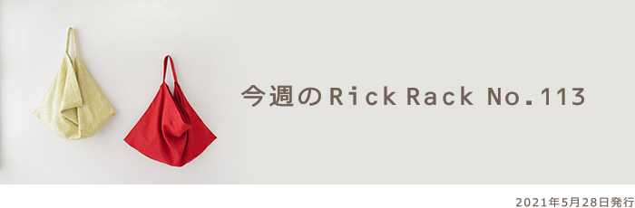 | 郵便番号、ご住所、お名前(本名)、 件名に「わたしのレビュー」と明記の上、 info@rick-rack.com までご応募ください。 (コーナーに掲載の際にはイニシャル表示にいたします。 例 東京都 Mさま) みなさまからのご応募お待ちしています。 |
