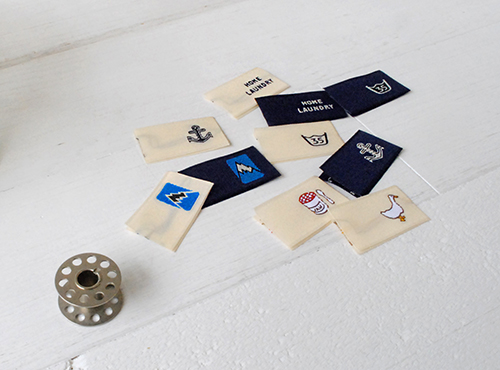 | 今回は白っぽい切り替えはやめて 衿元はマスタードのスパンで。 コントラストが可愛いです。 とはいえ無地なので何となくワンポイント欲しいなと、 余り生地の飾りポケットと 左脇に刺繍 折り込みタグ。 |