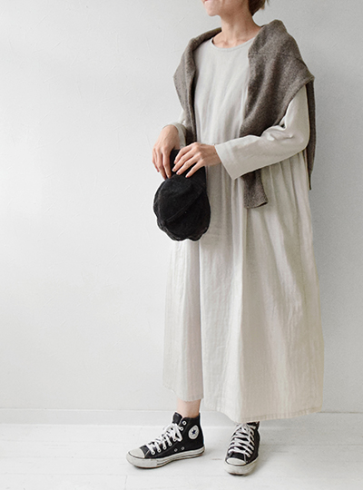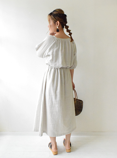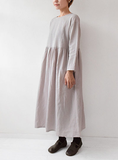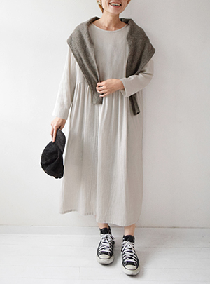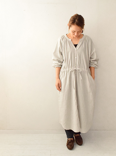 | ギャザーワンピース【2】 / 【ライトグレー】ダブルガーゼ | ||