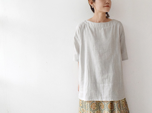 | 【チャレンジ】No.75 ボートネックブラウス【2】 / 【ライトグレー】ダブルガーゼ |