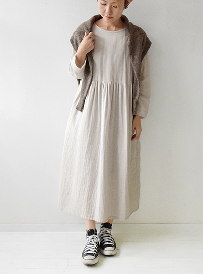 | 【チャレンジ】No.109 ギャザーワンピース / 【ライトグレー】ダブルガーゼ |