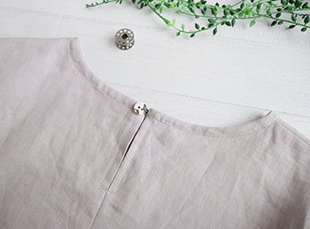 | ちなみに衿ぐりの後ろはあきがあるので、 それも後ろ姿のアクセントになっています。 |
