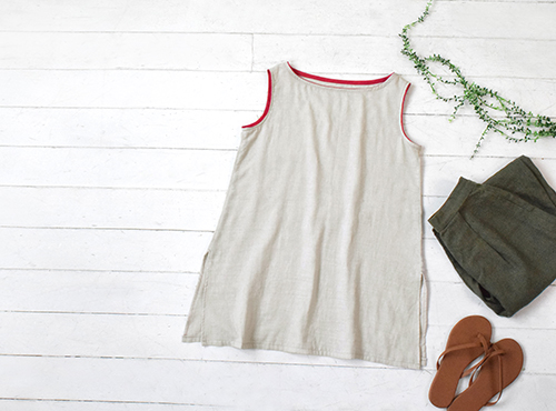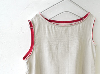 | 【チャレンジ】No.79 ノースリーブチュニック / 【ライトグレー】ダブルガーゼ / ヨーロッパリネン-和- バイアステープ【茜】あかね |
