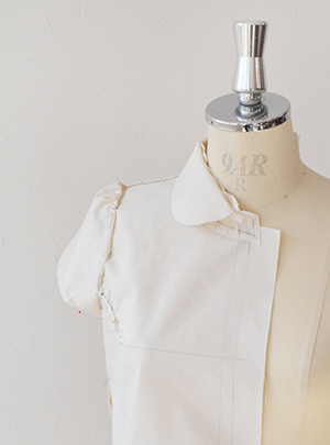 | 先週の時点ではまだトワルでの仮縫いでしたが 今週はサンプルができあがってきました。 |