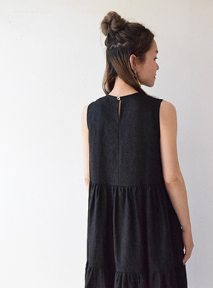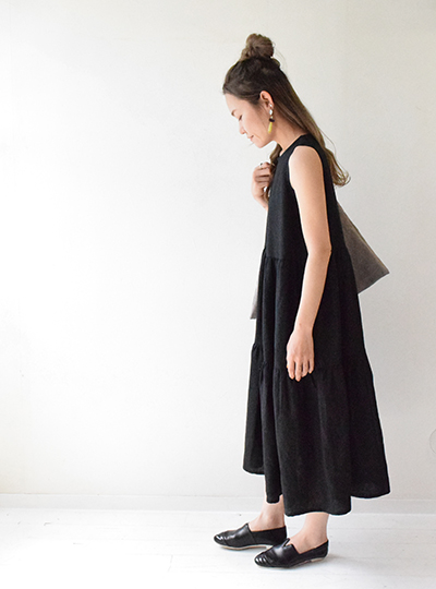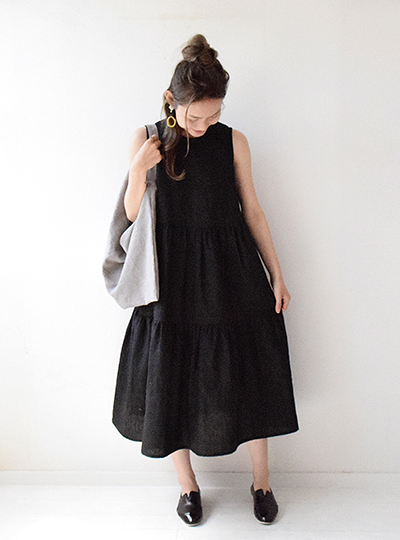 | そんな中、常連のNさまは、夏まで見すえて 「森で見つけたリネン」の 『ティアードワンピース』をつくられました。 |