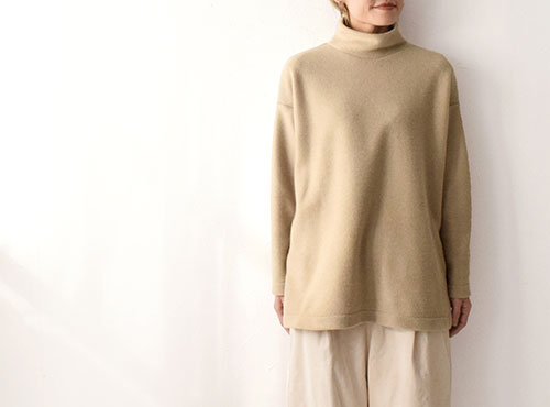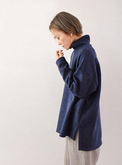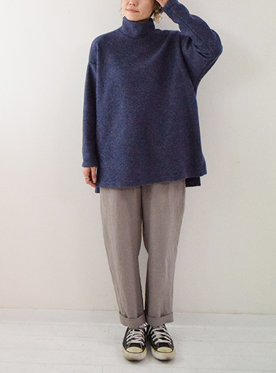 | 以前オフタートルプルオーバーを作ったのですが こちらはドルマンスリーブで身頃たっぷりなので コートを着る時モタモタしてしまいますが、 プルタートルはスッキリ着られそうです。 |