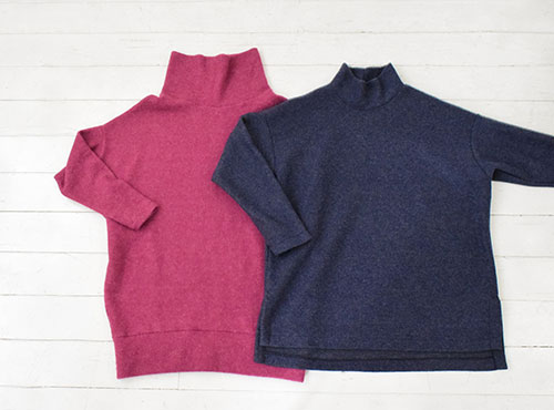 | 左:【チャレンジ】No.88 オフタートルプルオーバー / 右:【動画でソーイング】No.142 プルタートル |