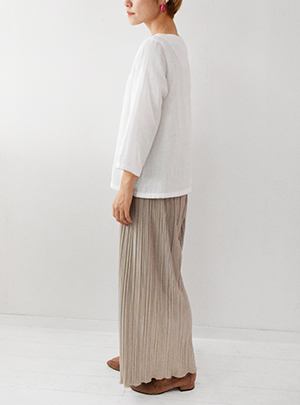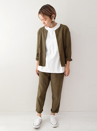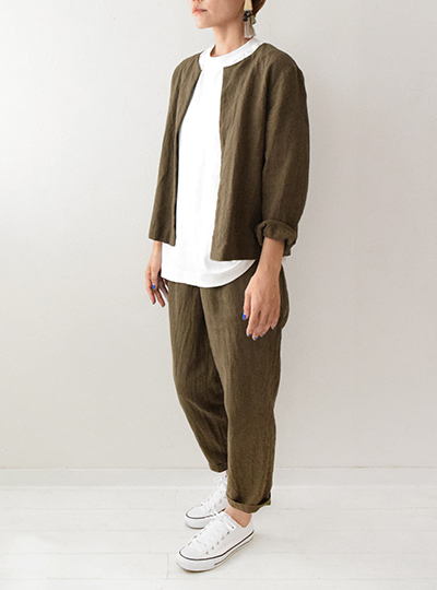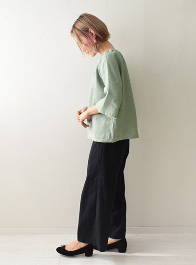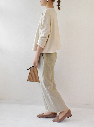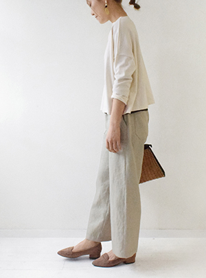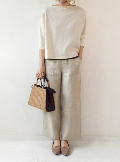 | そもそも、トリプルウォッシュリネンが大好きなわたし。 この生地のよさについて語ったら、 2時間以上熱く語れる自信があります( *´艸`) なにをつくるのにも、 トリプルウォッシュリネンが第1候補にあがるくらい好きなので、 『ターンアップパンツ』にももちろんいちおしです(^O^)/ 少しお値段は高いのですが、 一度トリプルウォッシュリネンでつくったお洋服を着ると その気持ちよさ、おしゃれさのとりこに。 今回の『ターンアップパンツ』も同様、 着る前から素敵だなと思っていましたが、 着たらより一層、そのよさに気づきました。 洗いをかけたリネンのやわらかさと 『ターンアップパンツ』のゆとりが リラックスできるのに、上品でおしゃれに見えるんです! |