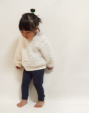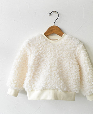 | 縫うところは少ないので短時間で完成しました。 試着して似合うか確認(これ大事ですよね) 袖丈などバッチリでしたので、 本番のふわっとニットで続けて作りました。 あー、これまた可愛い。 フリースで作っても可愛いはず!! と近所に生地を買いに走り フリースでまた作りました。 何着も作れば手順もバッチリで 時間もかからずすぐにできました。 |