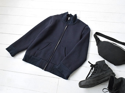 | そんなある日、 某人気アニメの大ファンの息子から 「ママ、これ作れる?」と見せられた画像がありました。 ハイネックでファスナーがついている ジップアップトレーナ―のような 濃いネイビーのトップスを着た男子高生 (いぬまき とげ君っていうらしいです) そのキャラクターと同じように ハイネック部分で口元を隠して着てみたい、という 息子のコスプレ願望を叶えてあげたい。 そして、これは『フルジップ&トレーナー』の 『フルジップタイプ』とそっくりの形。 |