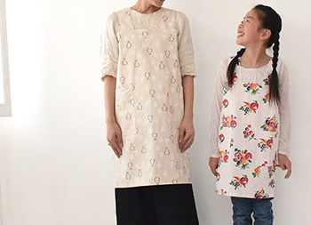| Rick Rack に入社して、ソーイングをはじめたばかりの頃、 初心者のわたしでも、 迷うことなく短時間に完成するのが楽しくて、 小学生の娘に姉妹お揃いでつくったり、 母や自分にも、生地を変えて何枚も縫いました。 |