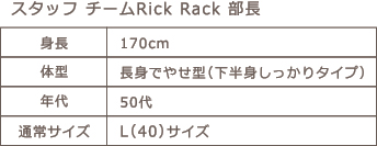 こちらのコーナーではRick Rack スタッフたちがサンプルを試着した感想を |