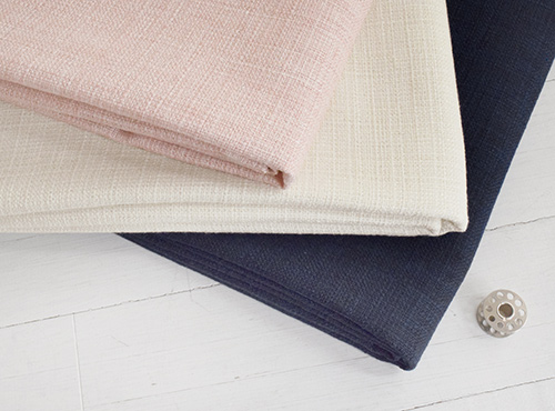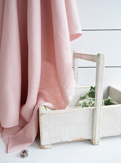 | …と思っていたのですが、 生地を探しながらわたしがビビッときてしまったのは 「カラーリネン」のサーモンピンク! せっかくなら、こんな濃いめピンクに挑戦してみよう! ということで生地も決定です。 |