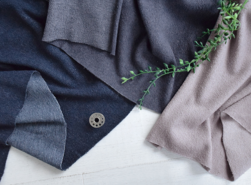 | 『ニットフレアスカート』は 生地によって穿き心地や、印象が変わるので 生地選びを慎重に。 ボトムスなので、薄いニット生地は透けてしまったり、 身体のラインを拾ってしまうかもしれません。 Rick Rack のおすすめの生地は しっかりめの中厚地のニット生地。 とくにわたしがおすすめするのは『クロスループジャージ』です。 |