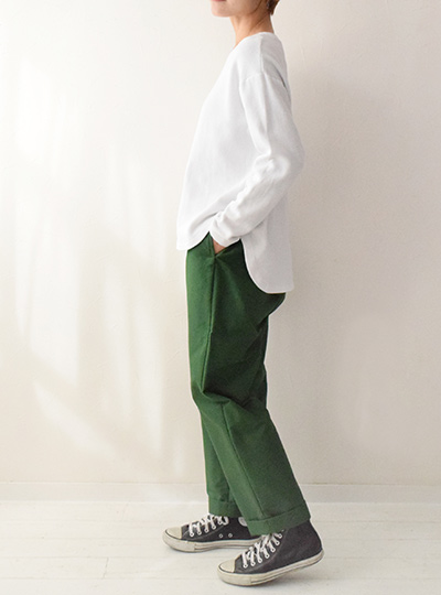 | 【動画でソーイング】No.143 ターンアップパンツ 通常ボトムス36サイズのモデルが36サイズを着用 |