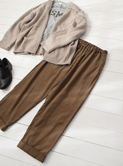 | 『エッグパンツ』や『バルーンパンツ』より、 『テーパードパンツ』や『ベイカーパンツ』のように ベーシックなデザインが好みという方も、 気軽に取り入れられるシルエットです。 |