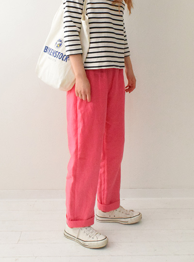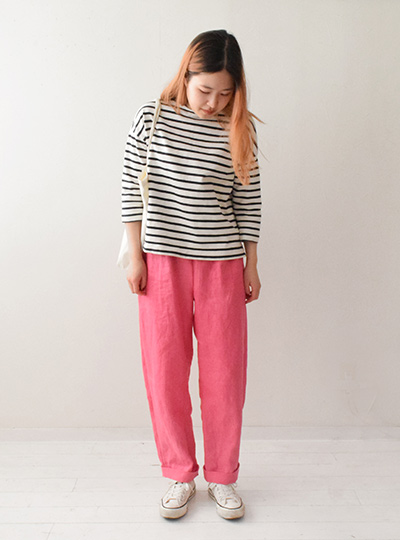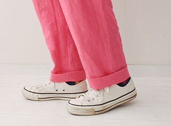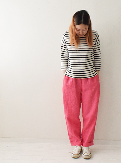 | 【動画でソーイング】No.143 ターンアップパンツ / カラーリネン【サーモンピンク】 |