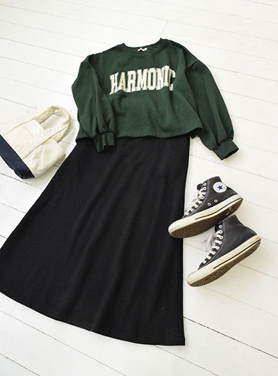 カジュアルコーデにかかせない 『スウェット 無地』のスカートは 1着持っていると活躍します。 パーカーやトレーナー、シャツやブラウスなど どんなトップスとも相性◎ですよ。 |