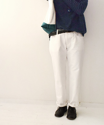 | また、ウエストゴムではなく、 穿きやすいファスナータイプをつくろうという方は、 『ストレートパンツ』【股上浅め】、【股上深め】、 生地は「チノストレッチ」や「ホワイトデニム」を選ばれていましたよ。 |
