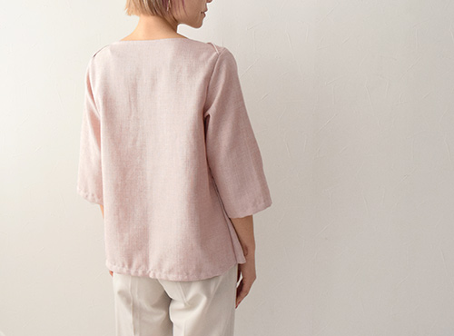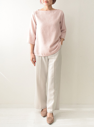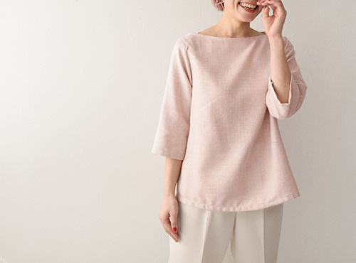 | 【チャレンジ】No.75 ボートネックブラウス【2】 / ちょっぴりラメのツイード【ピンク】 |