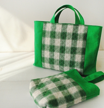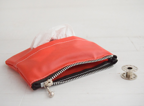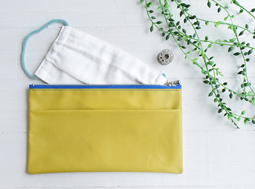 | 高校生の頃には、 『ラミネート生地でつくる おさんぽバッグ』を お弁当バッグ、 『マスクポーチ』をペンケースとして使っていました。 (付箋やカラーペンもたくさん入って便利なのだそう) |
