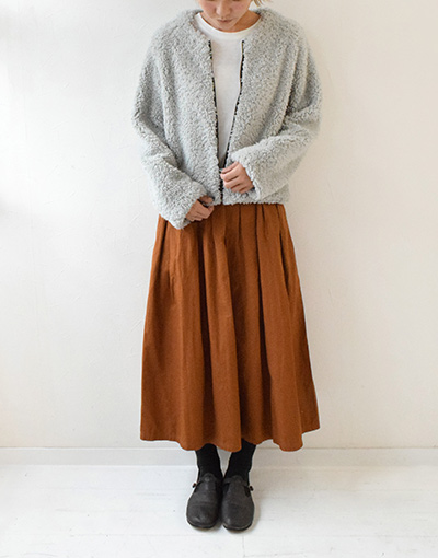 | 40サイズ 生地:ウールリッチパイル【グレー】 オープンファスナー【ブラック/アンティークゴールド】 ボトムスパターン:【チャレンジ】No.124 ニットロングタイト/40サイズ (丈を7cm長くアレンジ) モデル身長:163cm (通常トップス38サイズ、ボトムス36サイズのモデルが着用) |