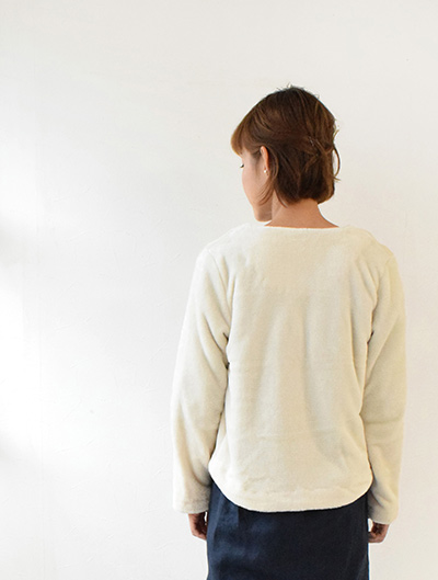| ファー以外のニット生地でつくる ファーのニット生地でつくるのを前提としてできた 『ファーブルゾン』ですが、ファー以外のニット生地でつくっても◎ しっかりめの生地でつくれば、 普段使いに気軽に羽織れるブルゾンになります。 ぜひチャレンジしてみてくださいね。 |