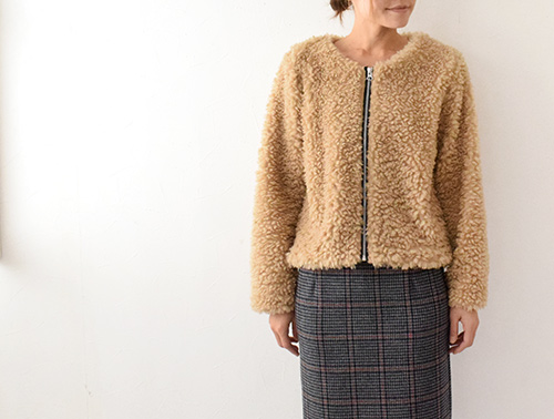 | 冬に向けて ショート丈で、デイリーに使えるアウターとして 「ウールリッチパイル」の『ファーブルゾン』を作ってみました。 |