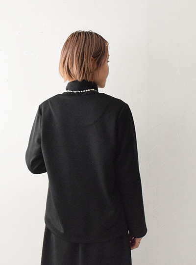 | 38サイズ 生地: 厚手のファーニット オープンファスナー【ブラック/アンティークゴールド】 モデル身長:163cm |